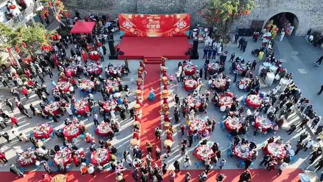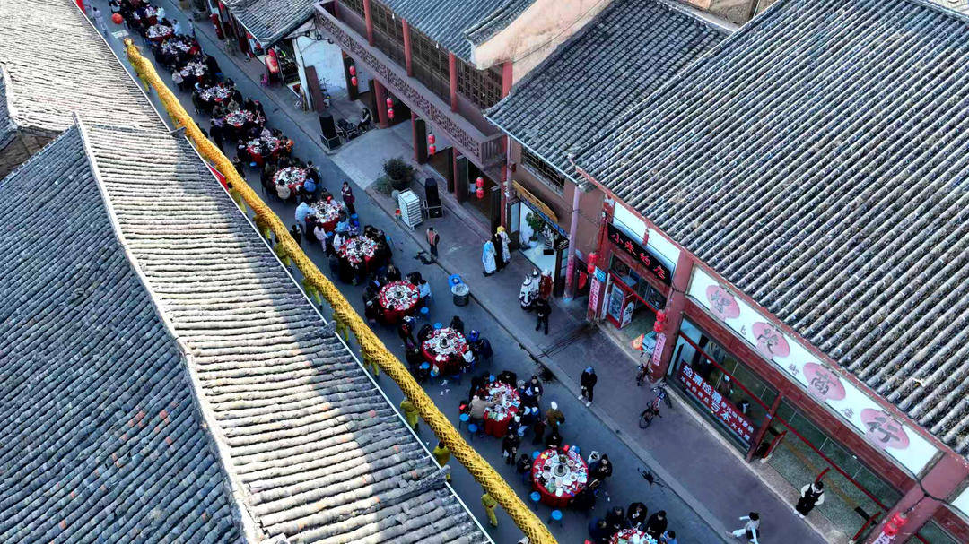 迎新年 四川会理古城百桌“年猪宴”热闹开席