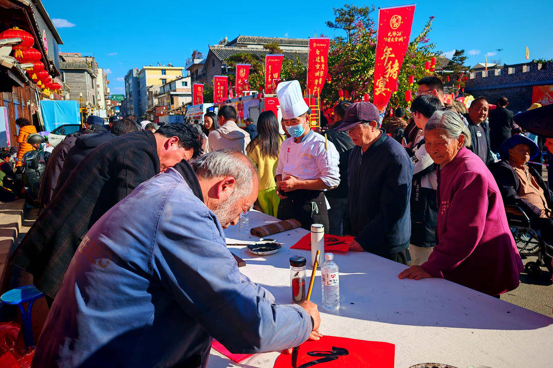 1月1日,四川凉山州会理古城,热气腾腾的“年猪宴”摆了上百桌,千余名游客、市民围坐,同品尝美食,共迎新年。